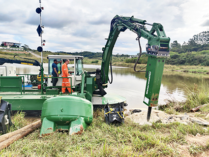 In January 2019, a tailings dam collapsed in Brumadinho, releasing a large volume of mining residues into the Paraopeba River. As part of the mining company’s recovery program, Construtora Vale Verde is now removing tailings from a 6 km stretch of the river. The toughest areas are where the water is very shallow, the banks unstable and road access is limited. To reach them without building new roads or other temporary works, the team uses an amphibious Watermaster Classic V — the first in Brazil. It reaches and works in the most challenging sections of the river where the rest of the fleet cannot. The goal is to remove the tailings safely so the Paraopeba and the communities along it can recover.